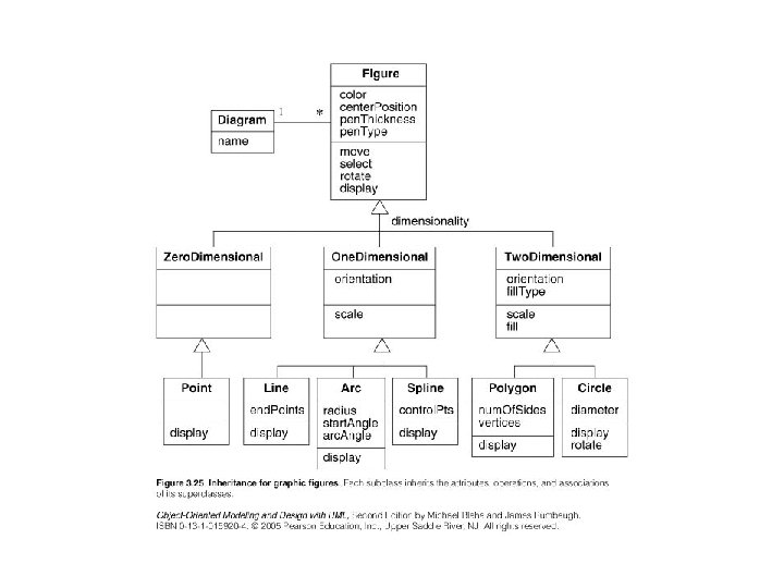 Operations and Methods • An operation is a function or procedure that may be applied to or by objects in a class. • Each operation has a target object as an implicit parameter. • All objects in a class share the same operations. • The behavior of the operation depends on the class of its target. • The same operation may apply to many different classes. Such an operation is POLYMORPHIC.