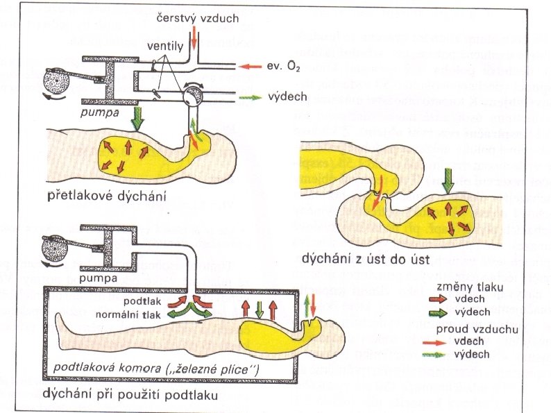 UPV: soubor postupů umožňujících podpořit/zajistit výměnu plynů v plicích. pozitivním přetlakem (PPV) negativním podtlakem trysková ventilace oscilační ventilace