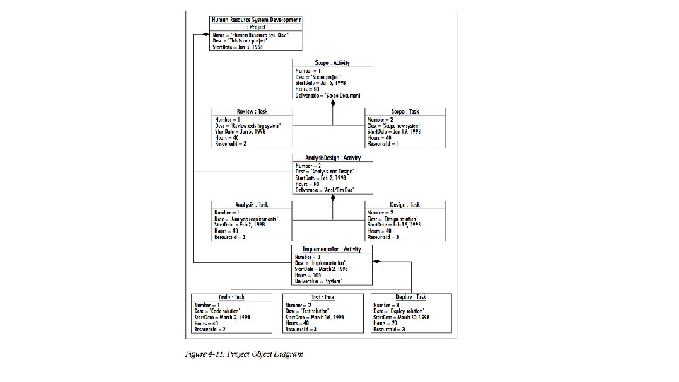 Object Diagram • Object diagram is an instantiation of a class diagram • Represents a static structure of a system at a particular time • Now obsolete (link)