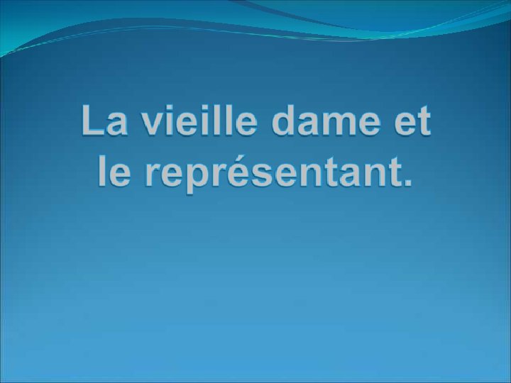 Un beau matin une vieille dame répond lorsqu'on frappe à sa porte. Elle y découvre un jeune homme, bien habillé avec un aspirateur à la main. Diaporama PPS réalisé pour http: //www. diaporamas-a-la-con. com