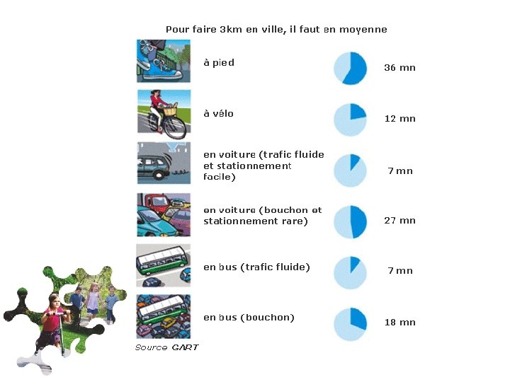 L’écomobilité, c’est bon pour la santé pollution de l’air + manque d’activité physique = problèmes de santé publique, surtout pour les enfants (asthme, surpoids, stress, manque de concentration, qualité de sommeil, … ) L’OMS recommande 30 à 60 mns d’activité physique