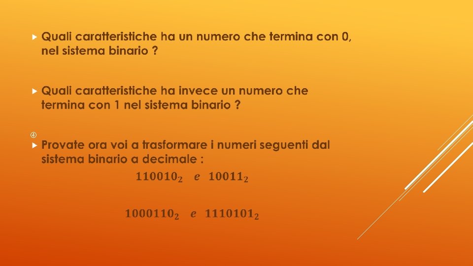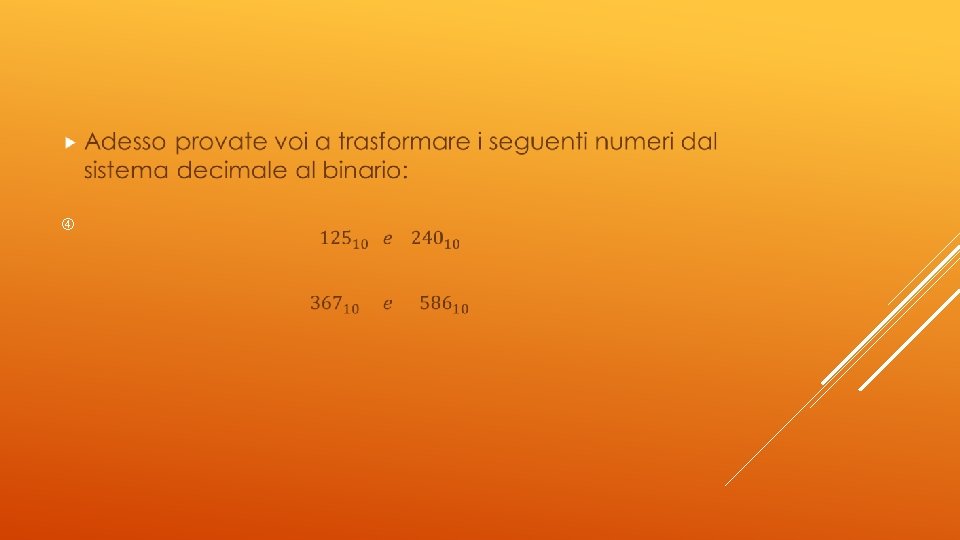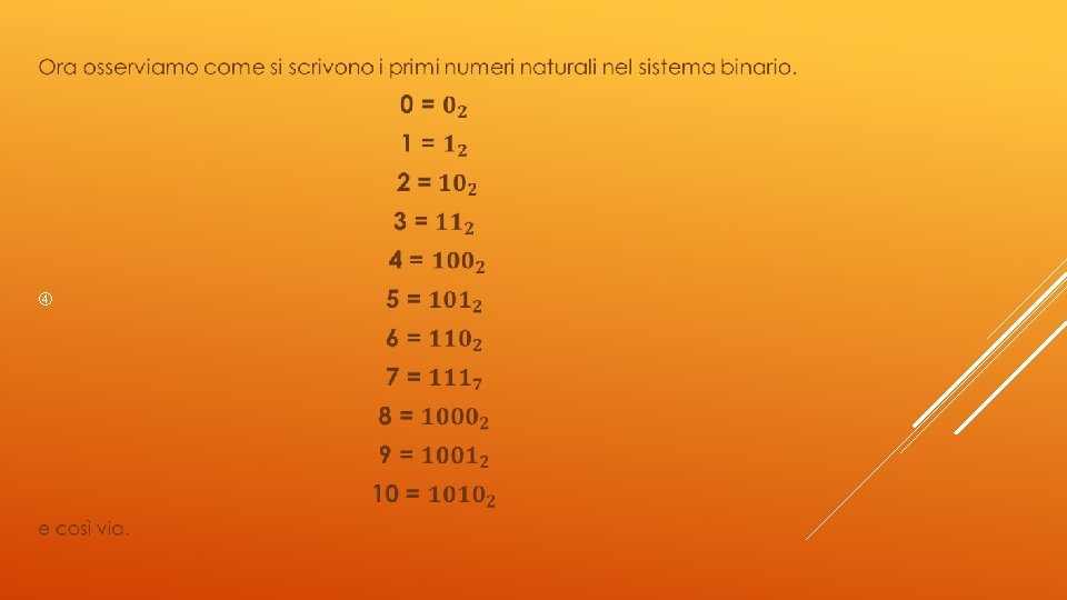 PASSAGGIO DAL SISTEMA BINARIO AL DECIMALE E VICEVERSA