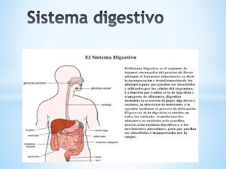 El aparato digestivo es el conjunto de órganos encargados del proceso de la digestión, es decir, la transformación de los alimentos para que puedan ser absorbidos y utilizados por las células del organismo.