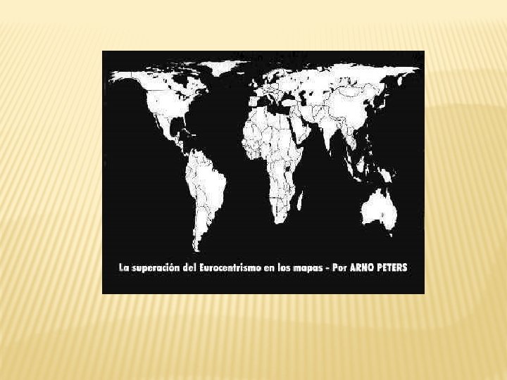 El mapamundi de Arno Peters Europa en el centro de la tierra… Por qué? El Norte mas amplio que el Sur… Por qué? El Ecuador no divide a la Tierra… Por qué?