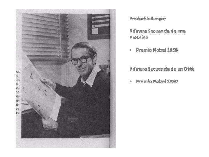 REVOLUCIÓN DE LA BIOLOGÍA MOLECULAR AÑO DESCUBRIMIENTO INVESTIGADORES 1944 DNA es el material que tiene la información Genética. The Professor, the Institute and DNA, René J. Dubos Experimento de Avery Oswald Avery (Pneumococus) 1949 Las proteínas están determinadas genéticamente. La hemoglobina de las células falciformes – Hb S. Medicina Molecular. L. Pauling y H. Itano Biografía - Force of Nature Linus Pauling * Electroforesis de proteínas Las moléculas de DNA son cadenas que forman una doble hélice. Nature, 1953 El Dogma Central de la Biología Molecular. J. Watson * y F. Crick 1953 F. Sanger Secuencia de insulina