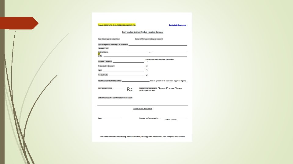 Hearing Request Form Online: https: //www. vbgov. com/government/departments/courts/circuit-courtjudges/Documents/Duty%20 Judge%20 Motion%20 Request%20 Form. pdf