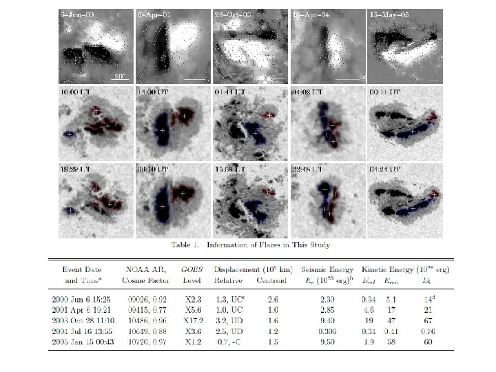• There appears a correlation between the kinetic energy associated with the sunspot displacement and the 6 m. Hz seismic energy, which favors the suggestion by Hudson et al. (2008) that sunspot displacement could potentially serves as an alternative excitation mechanism of seismic waves. • There appears moderate to good correlation (≥ 0. 51) between both the kinetic energy of sunspot displacement and the seismic energy at 6 m. Hz to the CME speed. • These could further provide rational support to the back-reaction mechanism during flares/CMEs, in the sense that the magnitude of this back-reaction (e. g. , sunspot displacement, seismic waves) might be related to how violent the coronal magnetic field is disrupted.