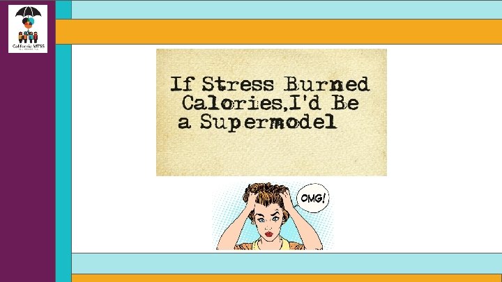 Eustress (Positive Stress) Stressful, but primarily positive experiences. Short term, motivates and focuses energy. Experience is within our coping abilities, feels exciting and improves performance • Receiving a promotion or raise at work • Starting a new job • Marriage • Buying a home • Having a child • Moving • Taking a vacation • Holiday seasons