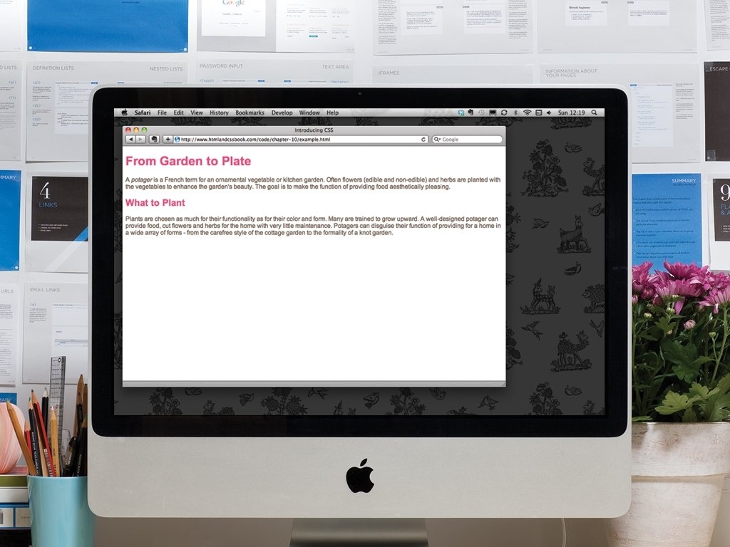 INTRODUCING CSS HTML <h 1>From Garden to Plate</h 1> <p>A <i>potager</i> is a French term for an ornamental vegetable or kitchen garden. . . </p> <h 2>What to Plant</h 2> <p>Plants are chosen as much for their functionality as for their color and form. . . </p>
