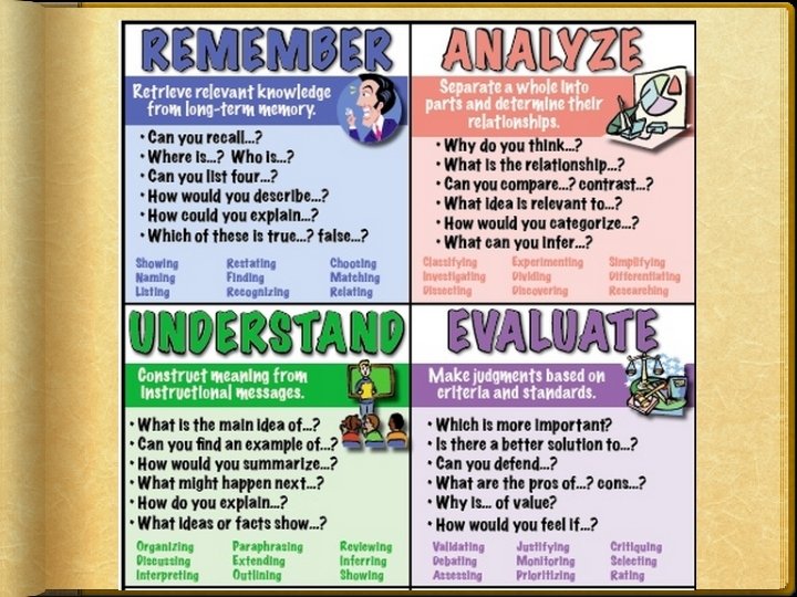 Axioms to Teach By “If it ain’t broke, don’t fix it. ” “Don’t reinvent the wheel. ” Blooms Taxonomy is Still Applicable