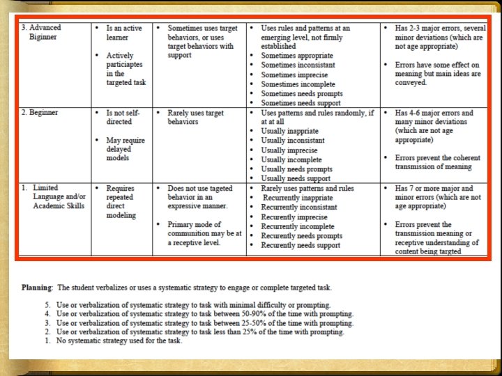 Planning and Competence: Use of a planning strategy that has been taught to complete a target activity or similar tasks (e. g. , looking at all of the pictures, waiting for directions, asking for assistance, etc. ) Transfer: Summarize the lesson and help children think how they will use the skill in other activities