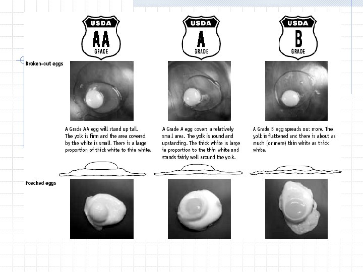 Purchasing Eggs Grading The best-quality eggs are graded USDA Grade AA, followed by USDA Grade A. USDA Grade B, the lowest grade.