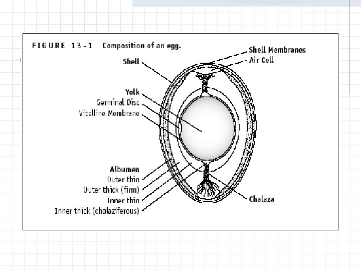Composition of Eggs The egg has five major components: n Yolk n Albumen (egg white) n Shell membranes n Air cell n Shell