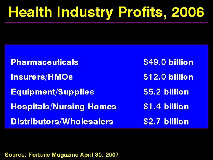 Single Payer Health Care Opponents § Insurance companies - lose business and lose profit § Pharmaceutical companies - lose profit § Many providers - fear change § Some small businesses - forced to pay a share § The insured – fear less coverage and more costs