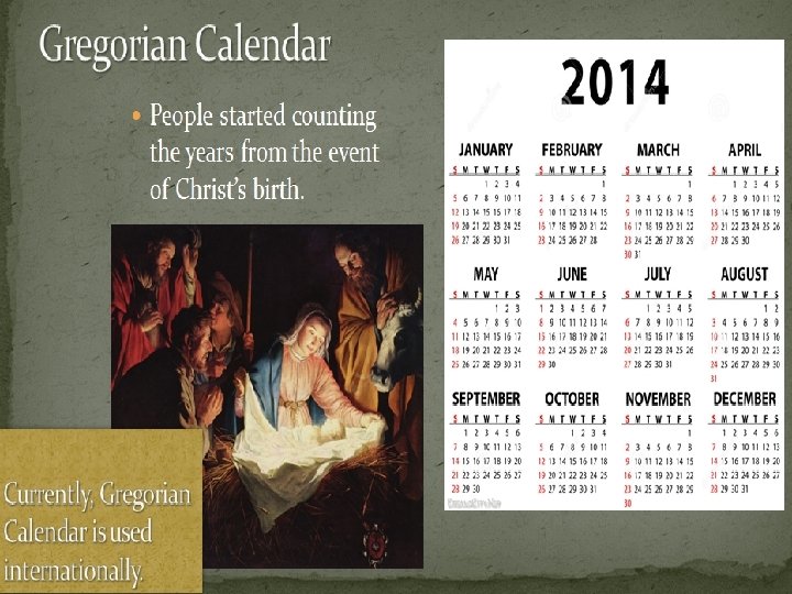 Calendars • Different cultures in the world have created different calendars to count time and events.