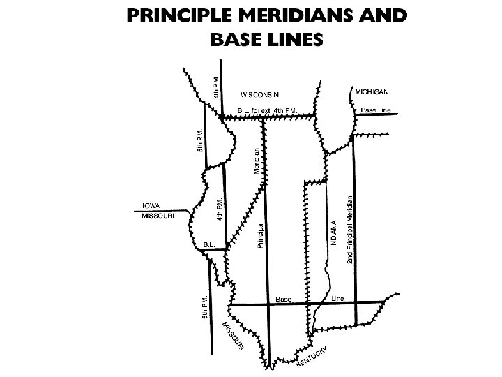 What Causes Irregular Townships and Sections? C. Surveys Meeting: Where the survey from one principal meridian meets the survey from another, both irregular townships and sections are sure to occur. • The same is true where surveys from two different base lines meet.