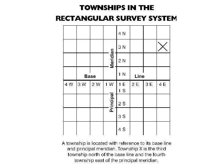 Terms Artificial monuments Base lines Clear title Meridian Natural monuments Regular township Section