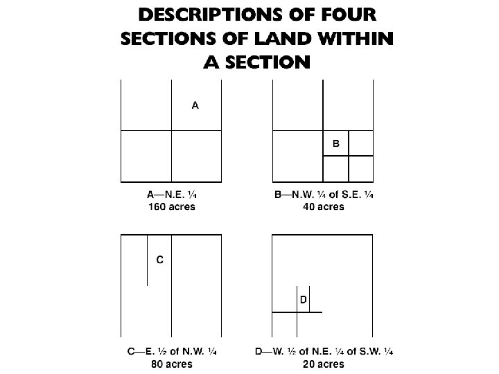What are the systems of land measurement and legal description? This is done by identifying and locating the fractional portion of each section for each tract of land. In land descriptions the last fraction given is the largest area or portion of the section.