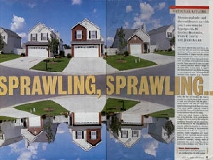 “The current system hits earnings and savings, while interposing preferences for selected economic activities such as home-buying or the bond issues that finance new sports stadiums, industrial parks and malls. This blend of incentives frequently over-stimulates the exodus of population and jobs from central cities to outlying areas. ” Pietro S. Nivola. “Make Way for Sprawl, ” The Washington Post, 1 June 1999