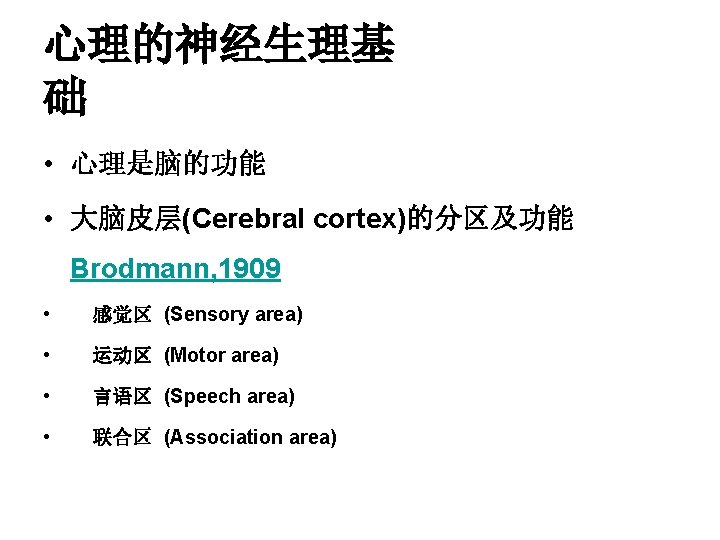 Understanding Psychology • 心理的神经生理机制 • 认知过程 (The Cognition Process) • 动机与情绪 (Motivation & Emotion) • 人格 (Personality)