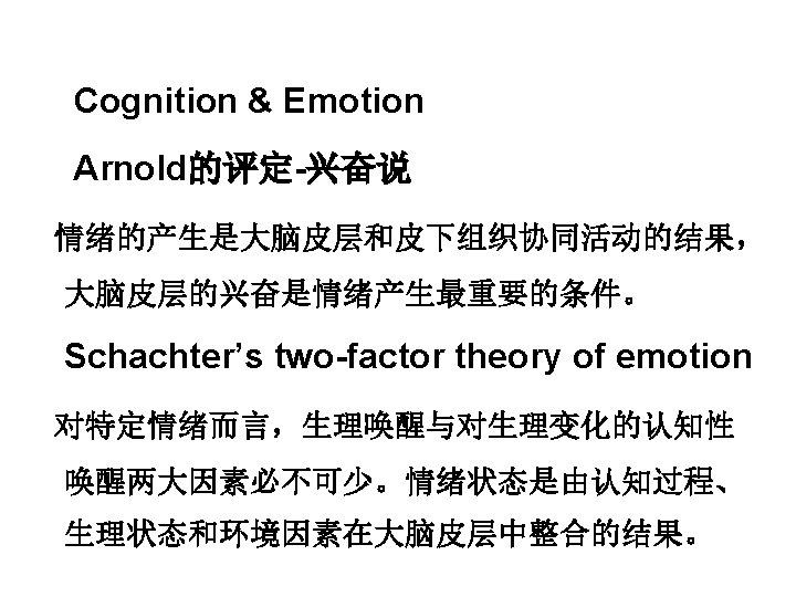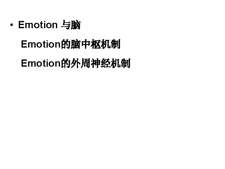 • Emotion概述 情绪、情感与感情 主观体验 (Subjective experience) 外部表现/表情 (Emotional expression) 生理唤醒 (Physical arousal)