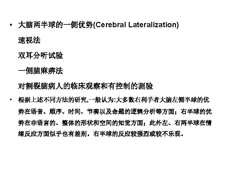 • Learning的概念 行为或行为潜能的改变 行为变化是相对持久的 由练习或经验引起的 • Learning的理论 Classical condition Operant condition Observational learning Cognitive Learning