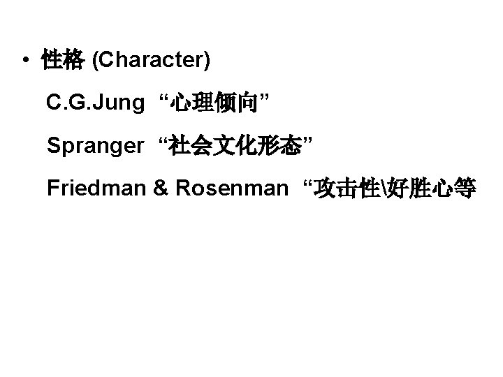 • Personality Theory 类型理论 (Theory of personality type) 特质理论 (Theory of personality trait) 层次理论