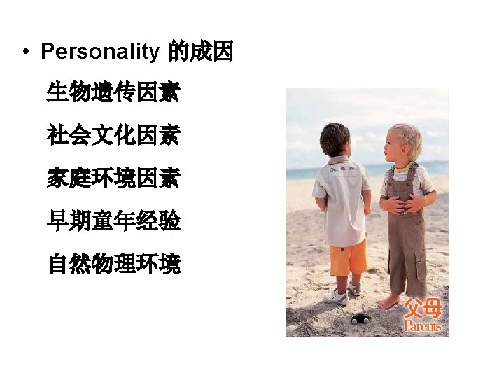 Personality • Personality 的涵义 独特性/稳定性/整体性/功能性 • Personality 的结构 • Personality 的成因 • Personality Theory