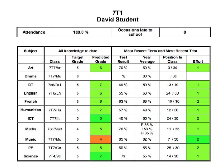 How to use the reports § Don’t wait for the report to start - help your child prepare for tests that are coming up § Use the reports as a starting point for discussions – what is going well? What is hard? § Set goals – more effort 1 s, higher percentages, more ambers and greens § What can you do to improve? § Less screen time, more reading