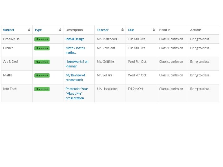 Show My Homework § All parents should have received details to access the Show. My. Homework web site – if you have not –see me or leave your email address § You can monitor the homework set for your son/daughter § See what is overdue § With some classes you may see the grades for the homework § Research shows that homework can make a real difference to a pupil’s progress; as well as the impact of the work, it is particularly valuable in developing routines and independence, § Talk to you son/daughter about the work § Provide a suitable environment – a base – with the materials they will need, avoid the time wasting § Establish routines – pack your bag the night before § Encourage organisation and effort § Test them! § Do not do it for them!