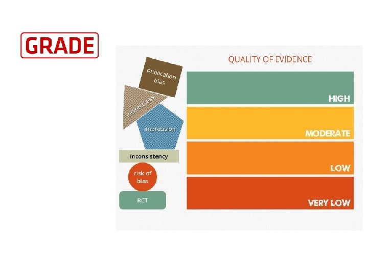 Quality of evidence We use the GRADE approach to assess the quality of evidence for clinically relevant outcomes. We consider evidence from randomized controlled trials as high quality, downgrading the evidence one level for serious (or two levels for very serious) limitations based upon the following: design (risk of bias), consistency across studies, directness of the evidence, precision of estimates, and presence of publication bias.