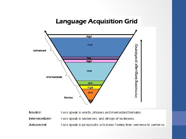 What is language proficiency? • It’s not about passing a test or getting the right answer. • It’s about what students can DO with the language. • Is the meaning understood even though everything may not be grammatically correct?