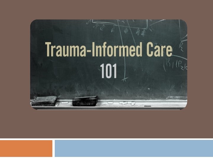 Traditional Approach vs. Trauma Theory Traditional approach � You are sick � You are bad � You are sick and bad Trauma theory � You are not sick or bad � You are injured