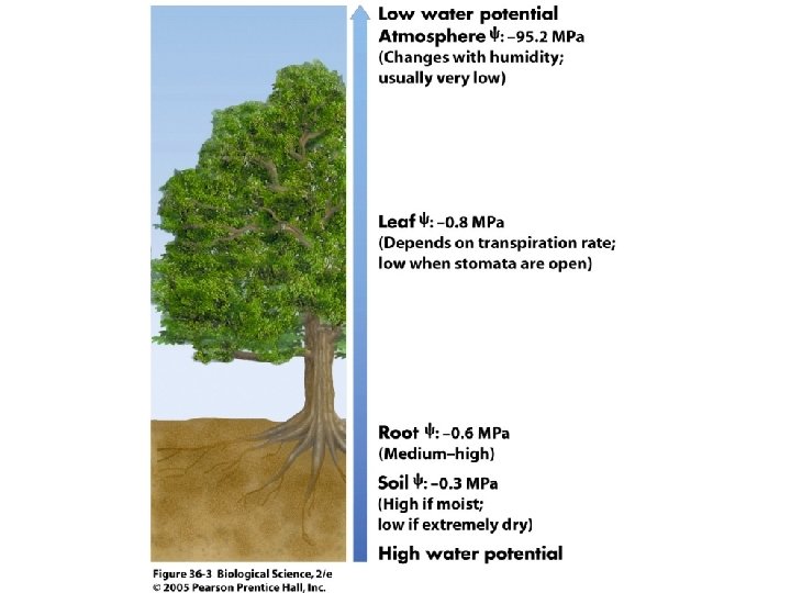 Water Potential Water potential (ψ): H 2 O moves from high ψ low ψ potential Water potential equation: ψ = ψS + ψP • Water potential (ψ) = free energy of water • Solute potential (ψS) = solute concentration (osmotic potential) • Pressure potential (ψP) = physical pressure on solution; turgor pressure (plants) – Pure water: ψP = 0 MPa – Plant cells: ψP = 1 MPa