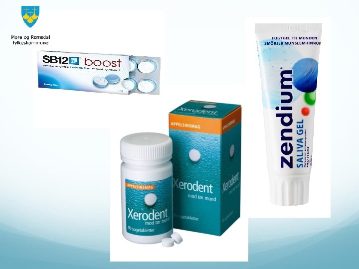 HJELPEMIDLER VED MUNNTØRRHET SKYLL MUNNEN OFTE MED VANN SPYTTSTIMULERENDE PASTILLER KAN KJØPES PÅ APOTEK KUNSTIG SPYTT KAN KJØPES PÅ APOTEK FLUORTABELETTER/FLUORTYGGIS FOREBYGGER OGSÅ KARIES POMADE TIL LEPPER