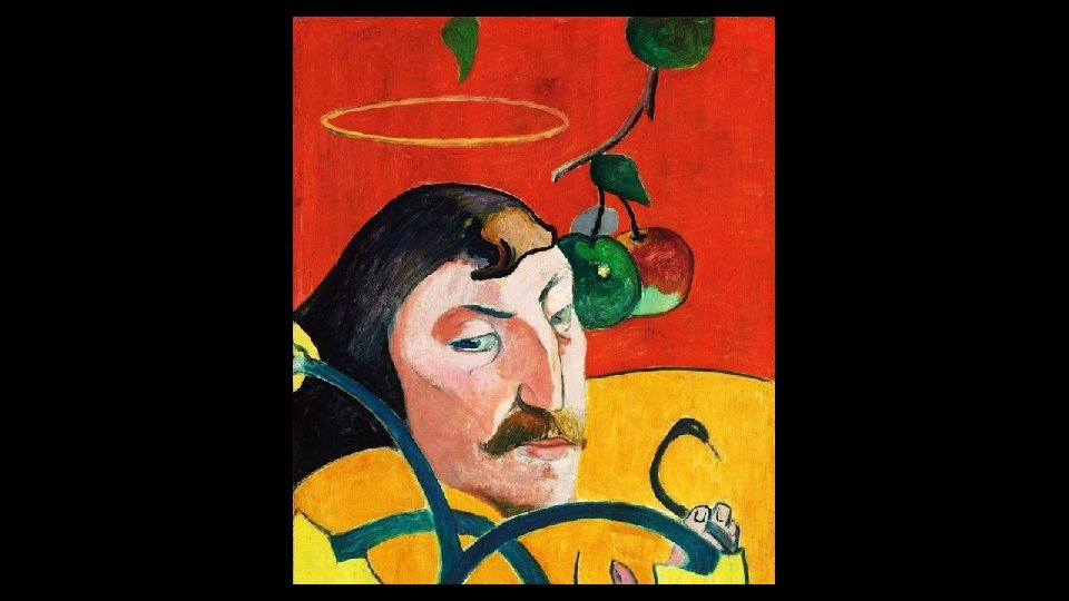trois symboles chrétiens: le nimbe et le serpent et la pomme, références au jardin d'Eden, à la tentation, péché et à la chute de l'homme … Gauguin se peignant à la fois saint et pécheur Paul Gauguin Autoportrait au nimbe Self-Portrait with Halo 1889 National Gallery of Art, Washington