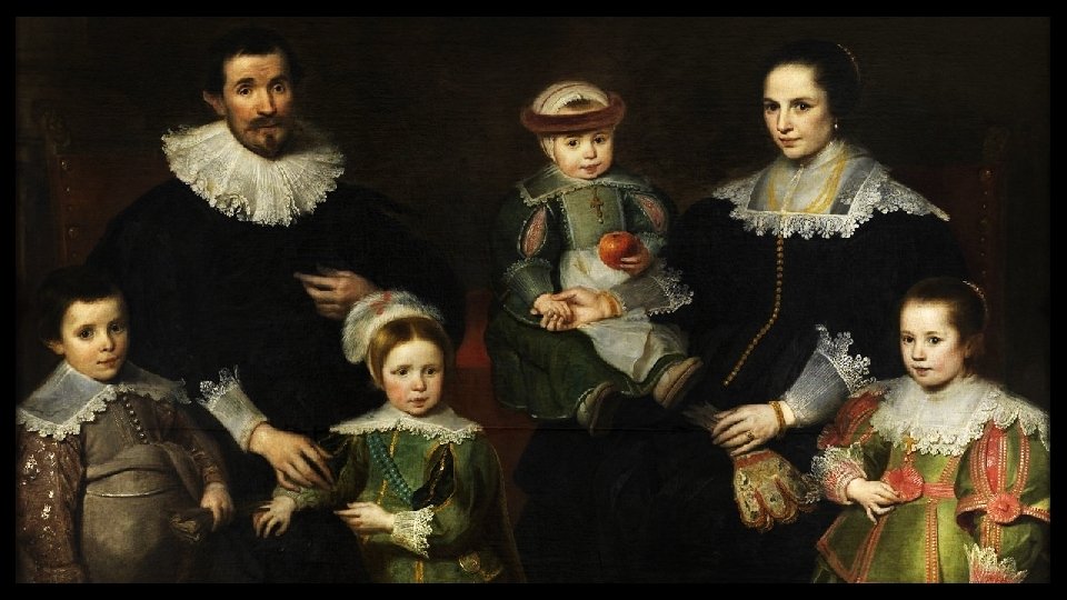 un portrait de famille et une signification moralisatrice … la pomme rouge fait référence à la fécondité et à l’éthique matrimoniale axée sur la procréation typique de la bourgeoisie du XVIIe siècle Cornelis de Vos Family Portrait de famille 1630 Museum voor Schone Kunsten, Ghent