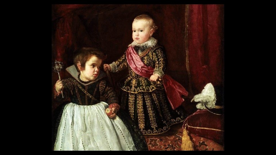 un hochet argenté et une pomme imitant un sceptre et un orbe et un nain (un majordome BD pour le futur roi d'Espagne …) Diego Velázquez Prince Baltasar Carlos with a Dwarf Le Prince Baltasar Carlos avec un nain 1631 Museum of Fine Arts, Boston