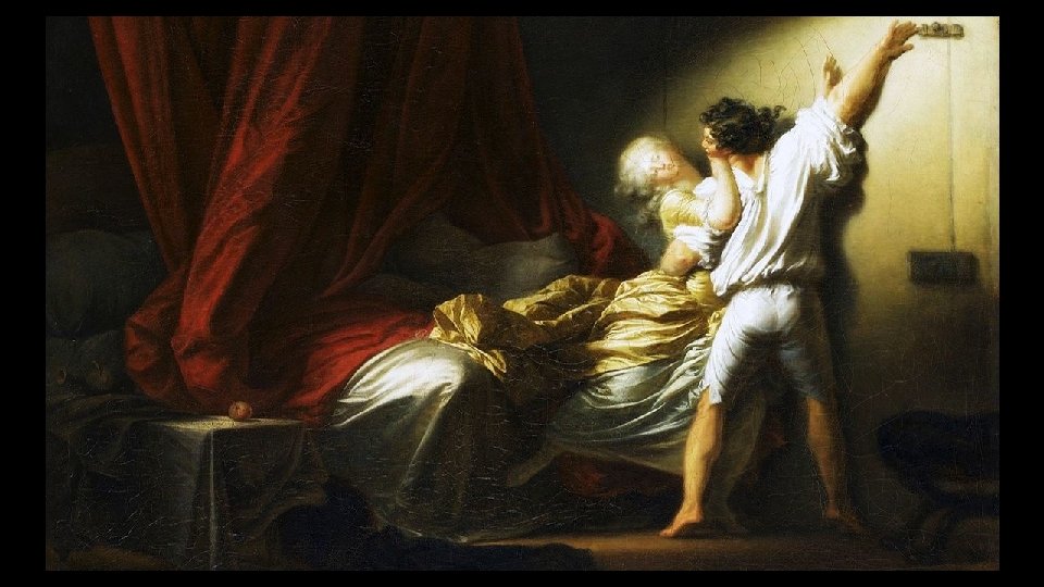 la pomme sur la table, symbole de la tentation d’Eve Jean-Honoré Fragonard Le Verrou The Bolt 1777 Musée du Louvre, Paris