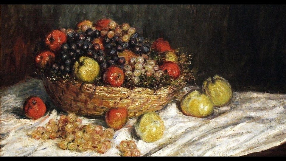 des pommes et des raisins … Claude Monet Still-Life with Apples and Grapes Nature morte aux pommes et raisins 1879 -1880 Metropolitan Museum of Art, New York