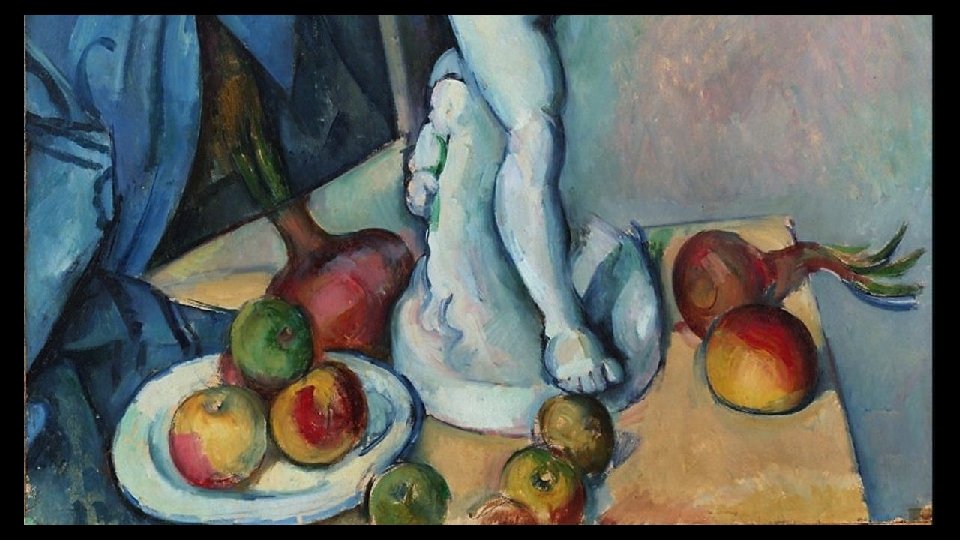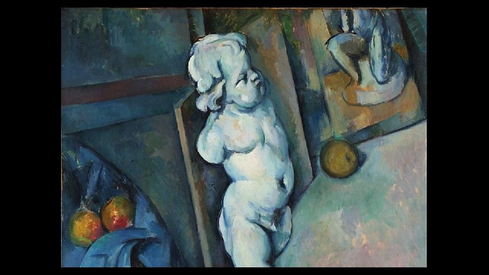 le Cupidon inerte contraste avec les oignons et les pommes richement colorés et pleins de vie. . . une œuvre magistrale et originale Paul Cézanne Nature morte avec l'Amour en plâtre Still Life with Plaster Cupid 1895 Courtauld Gallery, London