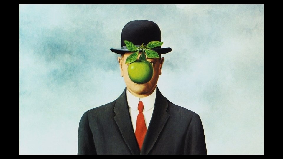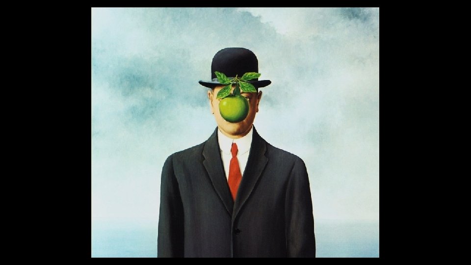 un paysage marin un mur un chapeau melon un homme et une pomme verte devant le visage … quelque chose de visible cache toujours autre chose de visible Rene Magritte The Son of Man Le fils de l'homme 1964 Private Collection