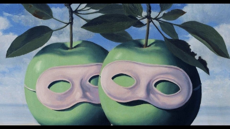 pomme masquée … une personnification du fruit, une parfaite image du mystère magrittien Rene Magritte The Married Priest II Le prêtre marié 1961 Private collection
