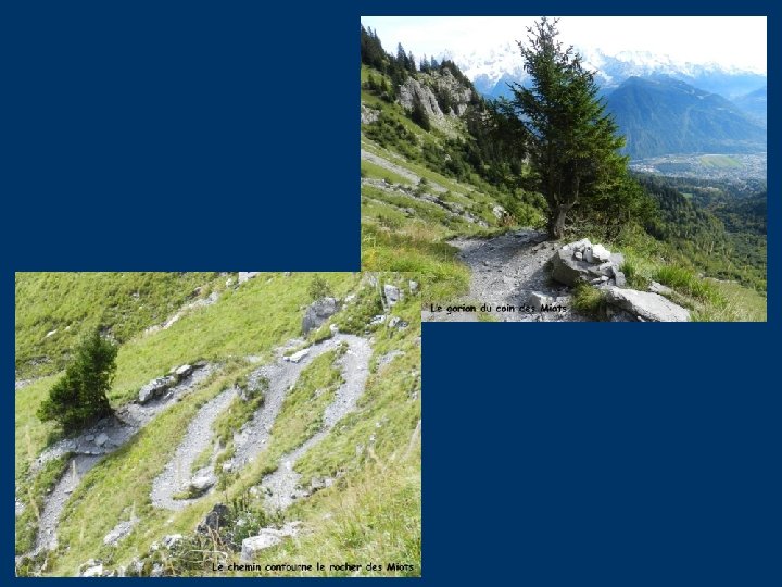Nous contournons le rocher des Miots. De là, on peut voir une vire herbeuse qui part à gauche. Un passage délicat la ferme: ce sont les Pas de Bovy. Autrefois Eugène Mogeny fanait à Bovy. Les foins secs étaient jetés par la falaise haute de 200 m. Il récupérait en dessous ce qu’il en restait. Son collègue, Bouillet, de la Size, faisait trois ballons de foin et, par trois allers et retours les amenait sur le chemin de Platé où l’attendait son mulet. Deux ballons sur le mulet et un sur ses épaules et les voilà à Charbonnière où était stationné un petit char.
