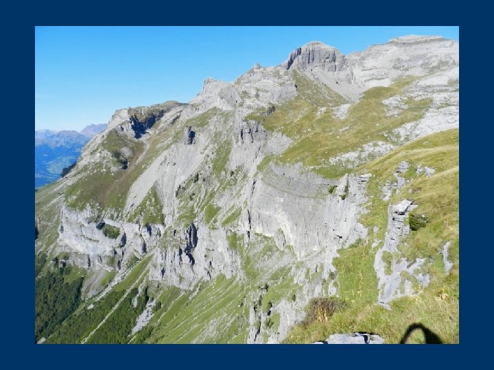 Des cristaux de calcite sont coincés entre les plis rocheux. La végétation est rare et typique de la falaise calcaire : saxifrage à feuilles opposées, androsace helvétique, plantes dites à coussinets pour mettre en réserve l’eau. Dans la cheminée, le tichodrome peut être présent. Les chocards à bec jaune y nichent. La roche devient noirâtre et se présente en bancs. C’est que nous avons quitté les roches du Crétacé pour entrer dans le Tertiaire, étage du Priabonien. Par une traversée, nous sortons de la falaise pour arriver à Platé en terminant par une passerelle.