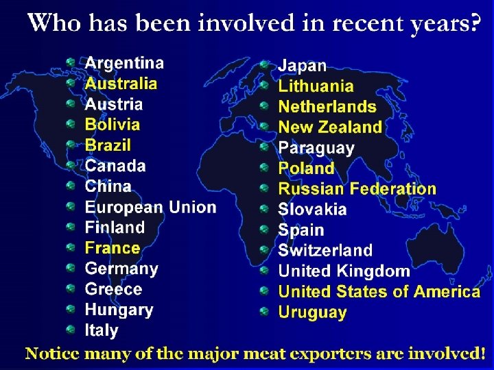 ACKNOWLEDGEMENTS France, November 2006 - Hosted meeting of Rapporteurs (Fancy Meats) Russia, October 2007 - Hosted meeting of Rapporteurs (Duck, Eggs and Egg Products) - Special thanks to Alain Boismartel (France) and Victor Gushchin (Russian Federation)
