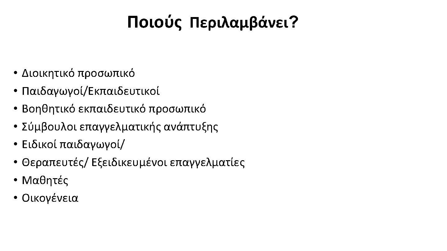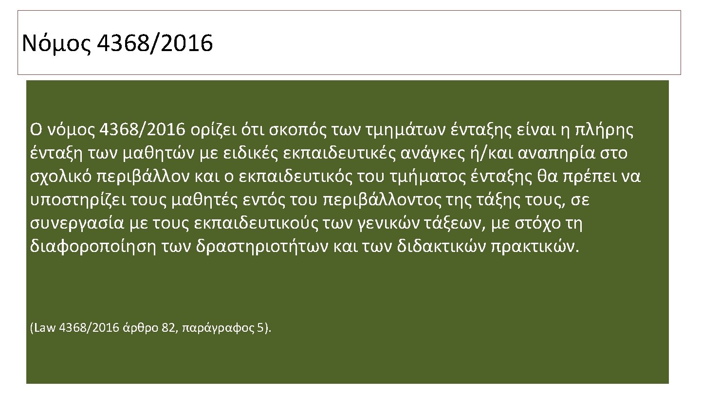UNESCO: ΣΚΟΠΟΣ ΤΗΣ ΕΝΤΑΞΙΑΚΗΣ ΕΚΠΑΙΔΕΥΣΗΣ The purpose of Inclusive Education is to “. . Remove the barriers limiting the participation and achievement of all learners, respect diverse needs, abilities and characteristics and that eliminate all forms of discrimination in the learning environment”. (Retrieved February 26 th , 2020 from: https: //en. unesco. org/themes/inclusion-in-education)