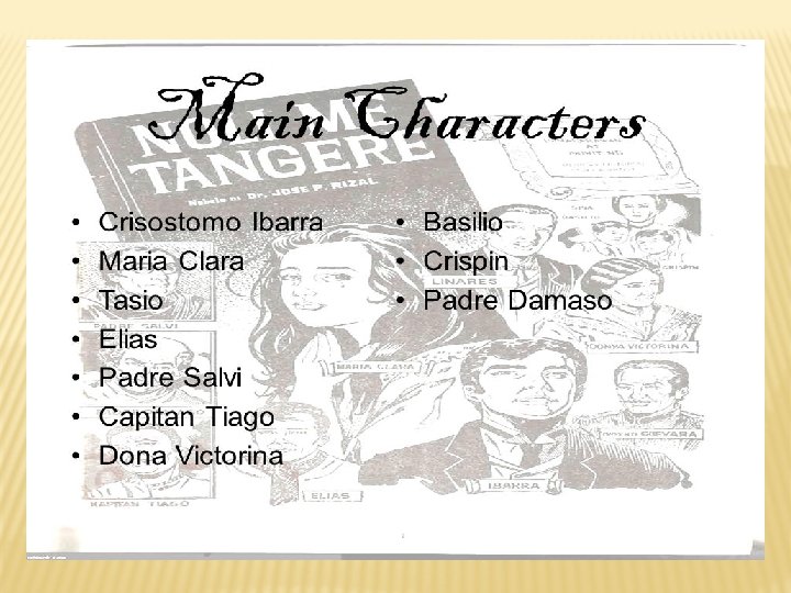 q Marcela - Manila-raised daughter of Kapitan Lucas, who returned to Tulig for her aunt's funeral q Tenyente Tato (Lieutenant Tato) lieutenant-general of the guardia civil. q Don Segundo - the Juez de paz or peace officer of the town. q Kapitan Tibo - next-in-line to the gobernadorcillo office.