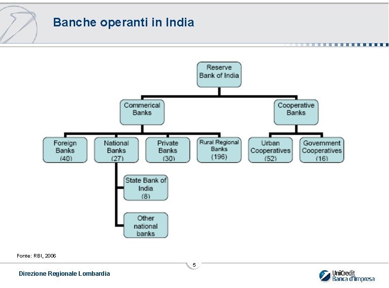 Banche operanti in India Fonte: RBI, 2006 5 Direzione Regionale Lombardia