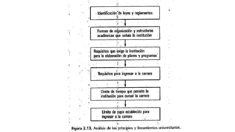 1. 5. Análisis de los principios y lineamientos universitarios, leyes y reglamentos pertinentes Algunos de los documentos sugeridos por Barriga, et. al. (1990) para analizar son los siguientes: • Informes de gobierno (actuales). • Ley Federal de la Educación. • Constitución política. • Ley orgánica de la UNAM. • Reglamento general de estudios técnicos y profesionales de la UNAM. • Acuerdos tomados por la ANUIES. • La legislación de cada institución educativa.
